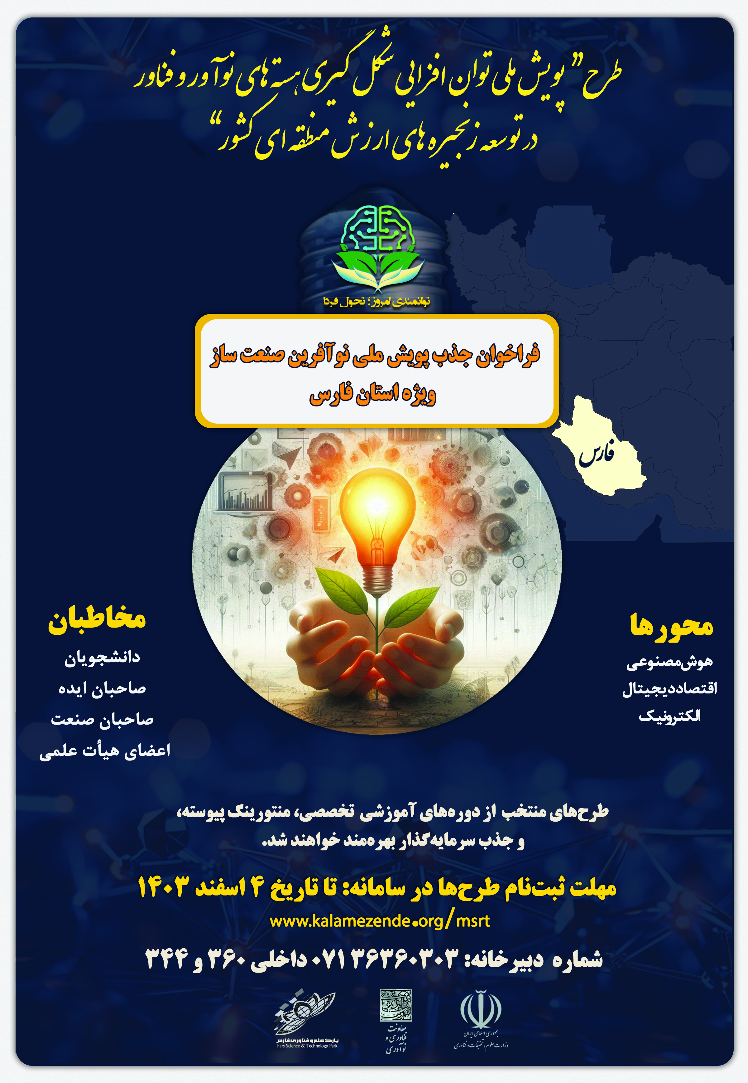 پارک علم و فناوری فارس به عنوان دبیرخانه استانی با همکاری شهرک علمی تحقیقاتی اصفهان برگزار میکند: