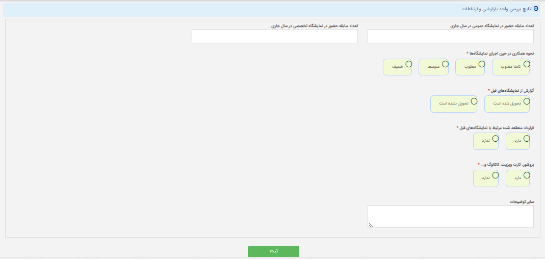 در صورتی که درخواست نیاز به اصلاح داشته باشد با وارد نمودن توضیحات می توانید با کلید "نیاز به اصلاح" فرم را به مرکز مربوطه ارجاع دهید. در غیر این صورت درخواست جهت بررسی به واحد بازاریابی ارجاع داده می شود.