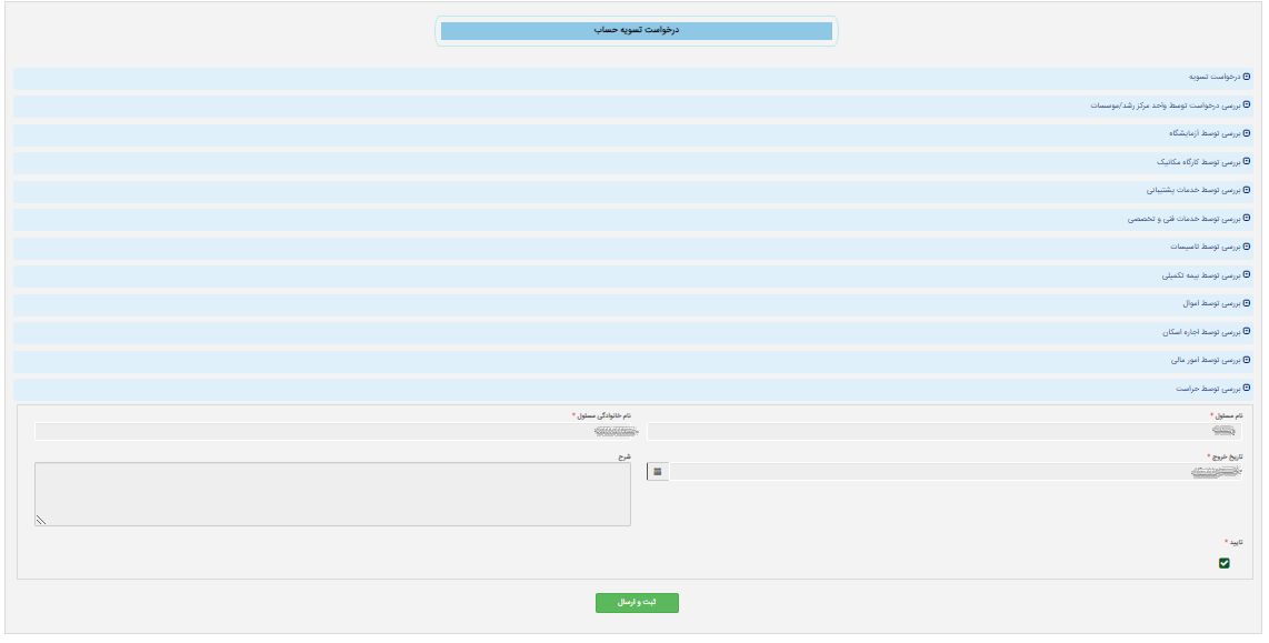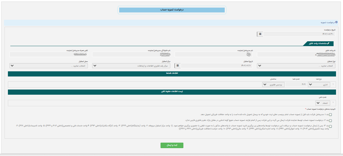 فرم باز شده را مطالعه و تکمیل کرده و دکمه "ثبت و ارسال" را انتخاب نمایید.