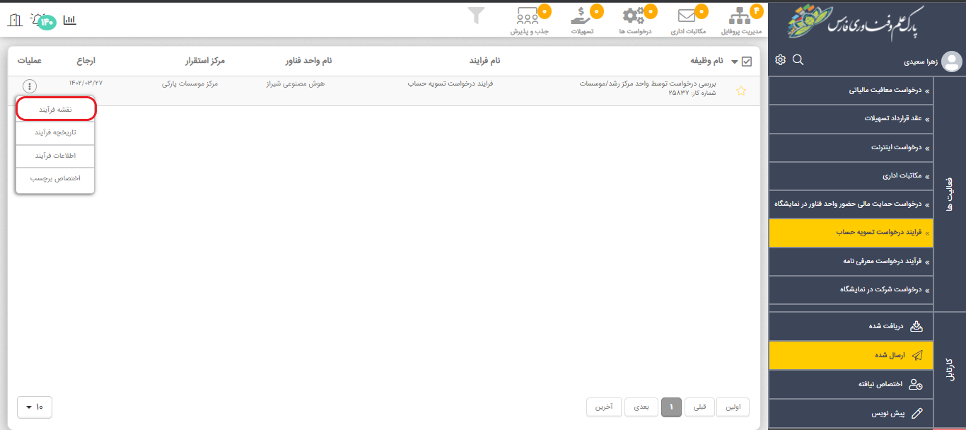 پس از انتخاب سطر مربوطه در زیر ستون عملیات، گزینه نقشه فرایند را انتخاب نمایید.