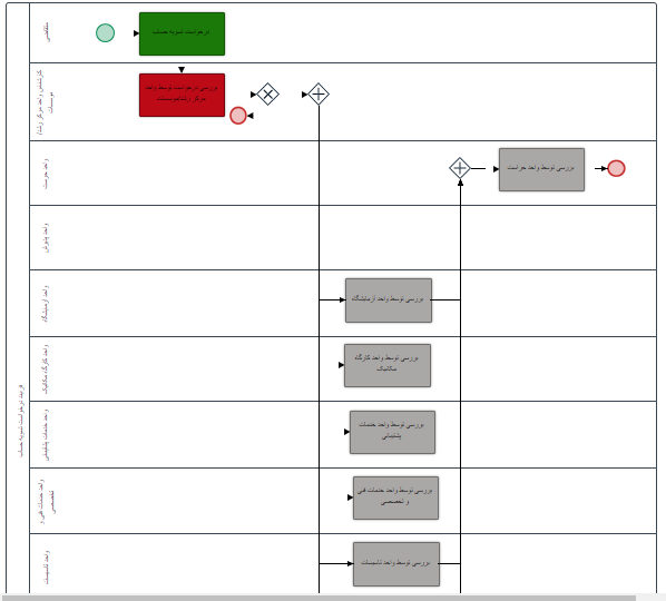 در این قسمت می توانید میزان پیشرفت فرایند را مشاهده کنید. مستطیل قرمز رنگ نشان دهنده واحدی است که همکنون درخواست در آن واحد قرار دارد.