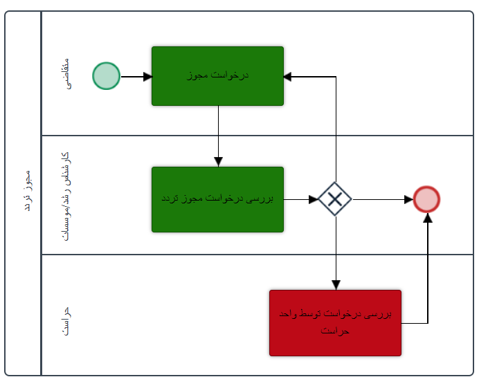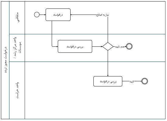 درخواست شما ابتدا توسط مرکز مربوطه بررسی می گردد و در صورت نیاز به اصلاح به کارتابل شما و در صورت تایید جهت ثبت نهایی به واحد حراست ارجاع می گردد. ضمنا در هر مرحله از فرایند در صورتی که نیاز به انجام فعالیتی توسط شما باشد به شماره همراه شما پیام ارسال خواهد شد.