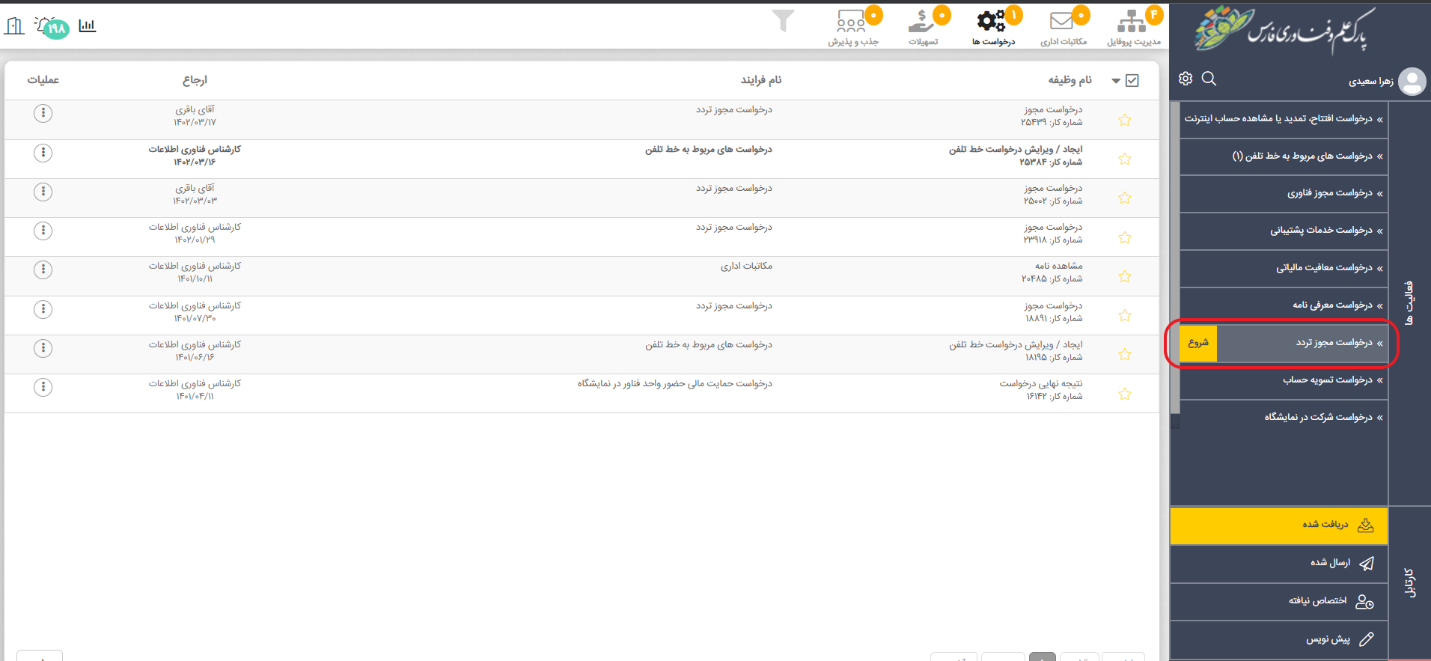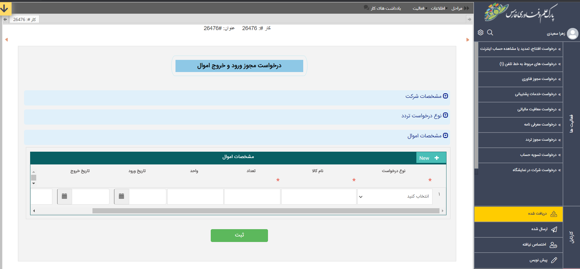 د) مجوز ورود و خروج اموال: برای گرفتن مجوز جهت ورود و یا خروج اموال شرکت از پارک