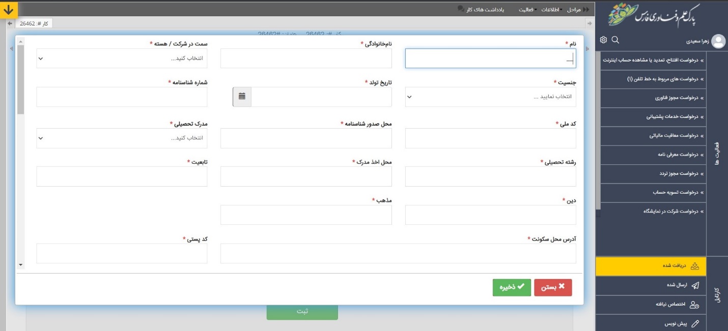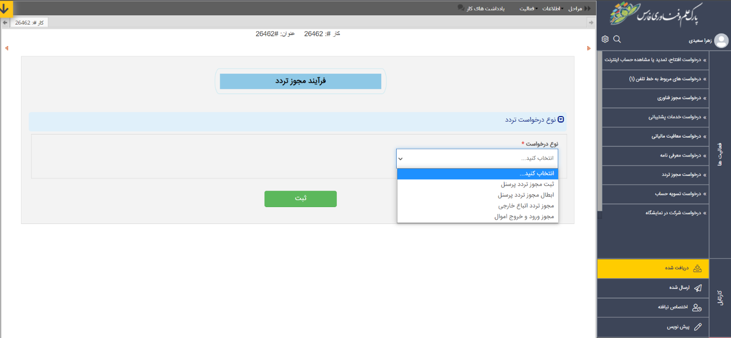 در فرم باز شده نوع درخواست را انتخاب نمایید.